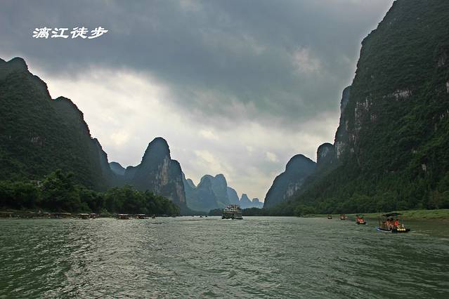 带着儿子,走得比较慢!整个徒步旅程耗时五个半小时!漓江徒步线路,有很长一段是要沿着江边堤岸狭窄处弯腰前行,身旁就是湍流的江水!有些徒步的小路,其实就是一批又一批徒驴们用双脚踩出来的!泥泞不堪!湿滑难行!将来大家遇到这些路,一定要小心慢行!在此,温馨提示!