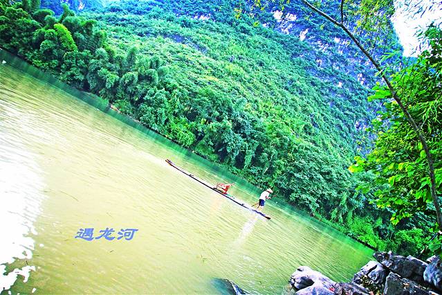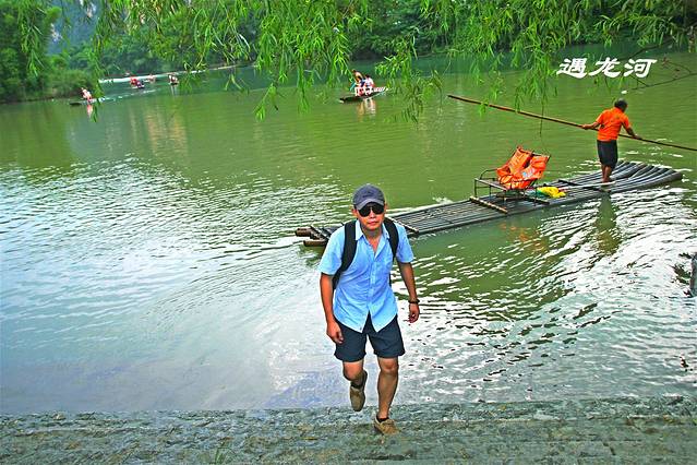 因为去过了银子岩,聚龙潭、金水岩等景点便一概略过。原路返回。车场取了车,奔下一站遇龙桥。如果说漓江是大家闺秀的话,遇龙河便是小家碧玉!清秀、柔美,一览无余!