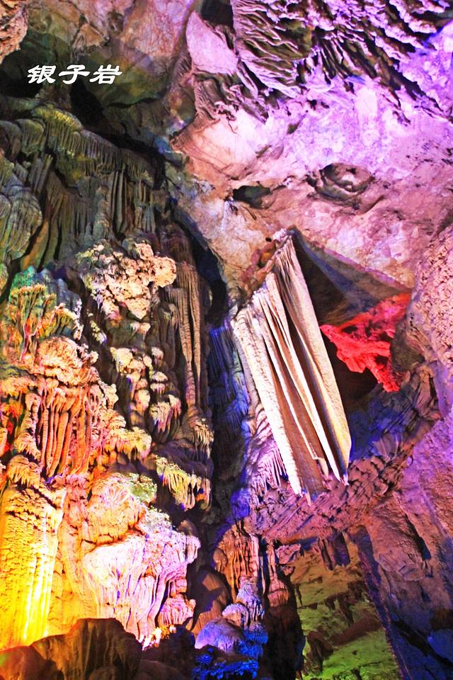 “银子岩”是典型的卡斯特地貌溶洞。不同时期的石钟、石笋……晶莹剔透,洁白无瑕,似银子、钻石般的光芒,倾泻而下,十分壮观!三绝、三宝,堪称大自然的鬼斧神工,誉为:世界溶洞奇观。