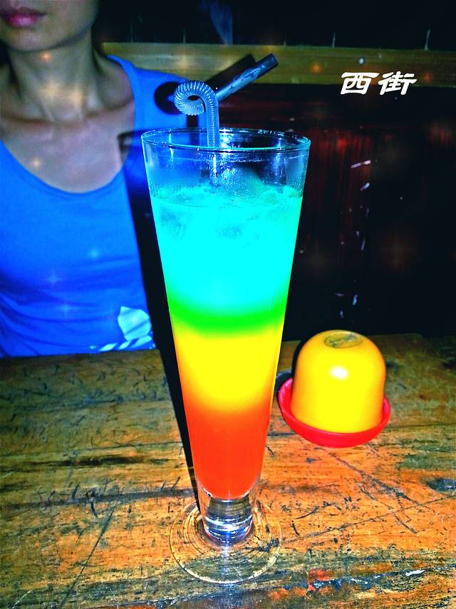 饱餐一顿后,顺便转转西街。西街的夜晚热闹非凡!我们找了一间清吧,儿子一杯饮料,我和太太各一杯鸡尾酒,只为感受一下气氛!