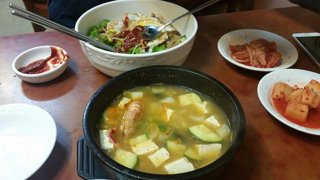 晚上回去又是快九点了,酒店周围的好多饭店都不营业了,我们也懒得往远走,在路口的一家小店吃了拌饭和大酱汤,说实话和沈阳的西塔水平还是有差距。