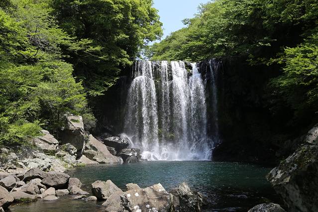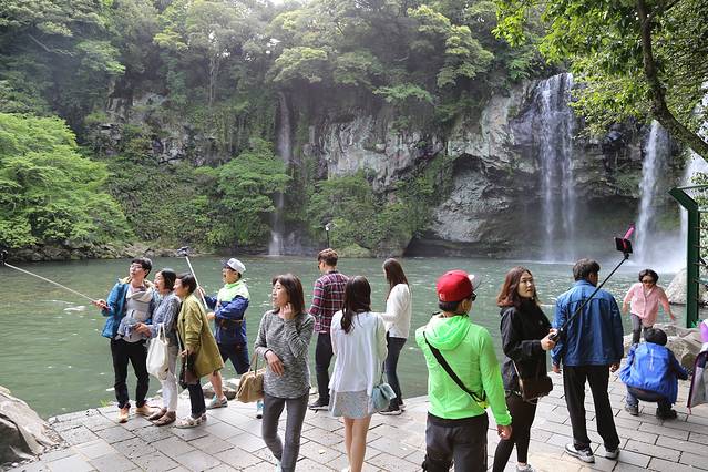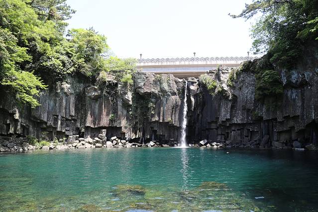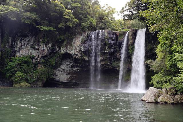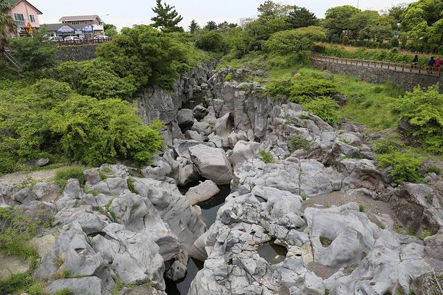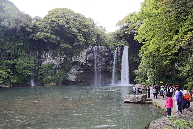 离开柱状节理带,我们在会议中心里面的7-11买了点饮料和冰淇淋,休息了一下。会议中心里面也有个小小的免税店,人满为患的样子。之后坐600路往西归浦方向,去了天地渊瀑布,感觉比天帝渊瀑布的景致稍微浓缩一些,但这两个名字。。。。真的是让人迷失。