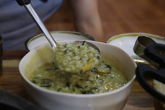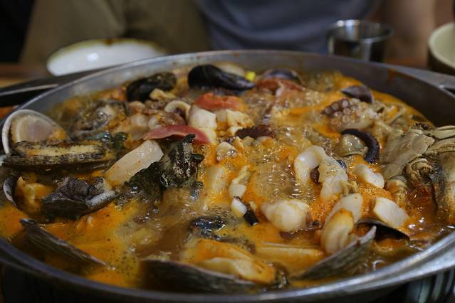 三姓穴的海鲜锅双人套餐5w,肥鱼君看到三人套餐才6w,果断要了三人的(后来说什么也没吃完,剩下的都浪费掉了。。。)。一大锅海鲜上来,真的是大开眼界,章鱼还是活的,一扭一扭,所有的海鲜都不是冰冻的而是鲜的,锅里也不是清汤,又送了方便面。店里很多中国服务员,给我们端来火锅的阿姨就是从河南来的,会贴心的为我们除去壳子,减开大的贝类肉。看着水一点点咕嘟咕嘟,又配了一碗鲍鱼粥(但鲍鱼粥跟海鲜锅比起来就逊色了一些),吃到最后恨不得躺在地上了,很超值!