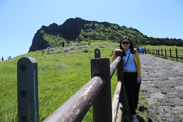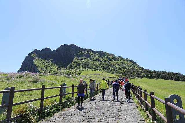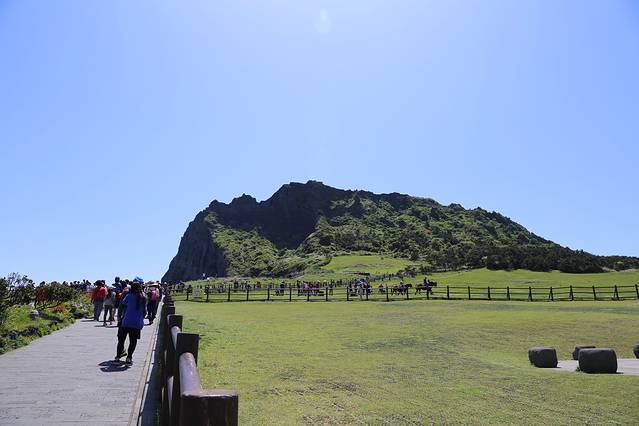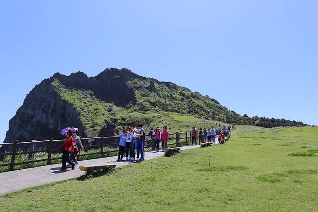 从酒店出来坐502路去市外巴士总站,不用担心坐过站,这一站有中文报站。之后顺利坐上东一周线701,这一路停了好多站,后来车上陆陆续续站满了人,大概一个半小时多才到城山日出峰。在城山事务所下车走不远就到了,是个一眼望到顶的小坡,爬了半个多小时就登顶啦。