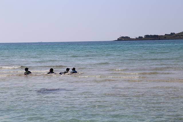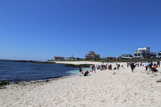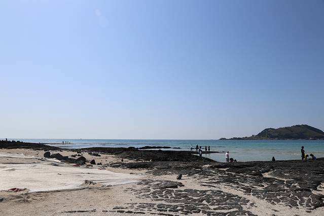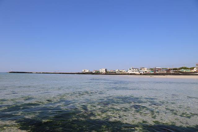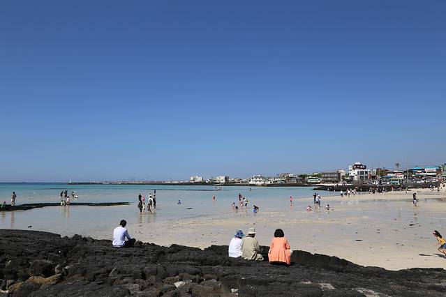 从翰林公园出来,直接去了对面的挟才海水浴场。下午阳光很强烈,穿长裤不能往深处踩水是失误呀。但是依然在海边玩了两个多小时。济州的海水质量很好,随便一个浴场都是这样清澈。当时我们就想住在这里的居民一定好幸福,回去马上百度了一下绿地的移民项目,哈哈哈。