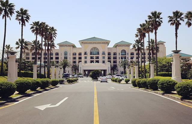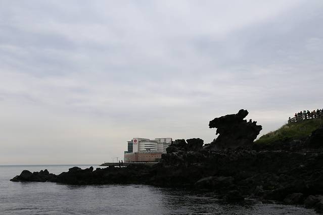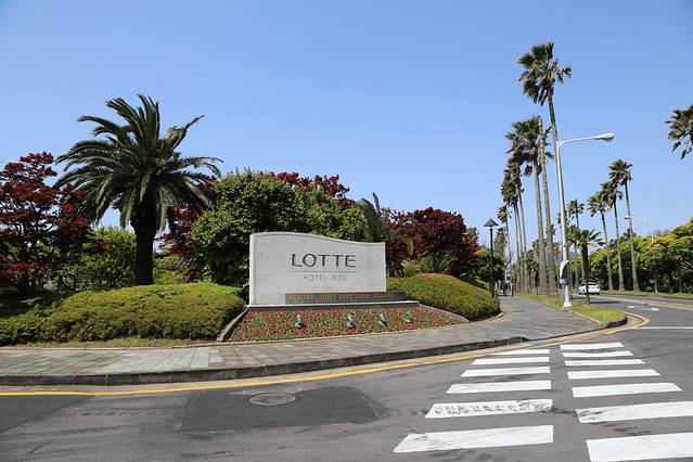 元气满满的第一天,决定安排稍微轻松一些的行程,就向中文旅游区进发了。酒店出门先去7-11买了T-Money卡,卡费2500,充了5W。然后直接坐600路,把准备好的小纸条给司机一看,再说一句“Two”,刷下卡就好啦。济州岛的物价普遍要比国内高的,这一趟巴士,单程就要4500/人。600路中间基本没有停站,车坐起来也比较舒服,大概一个小时就到啦。司机会喊一句“Jung Mum”,大家就下啦。我们一开始没反应过来,车会在各大酒店绕一圈再回来,我们就在乐天酒店下车了。去乐天小小的参观了一下,暗自摸了摸钱包,嗯!很奢华!
