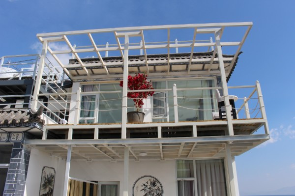 住宿方面,我选择了洱海边的客栈。之前有朋友来过这边,所以都没有找什么客栈就直接跟老板订了“朝蓝夕月海景客栈”,而且这是附近海景房里最便宜的了。这个客栈因为在村子的最里面,靠海的地方,天黑之后比较难找。老板人特别好,自己出来接我。村子里面都是比较窄的道路,所以骑电动车和自行车会更方便。到了客栈以后,心里那个激动呀。老板娘还很贴心的让厨房的阿姨给我留了点饭菜,好感动。吃完饭办好入住手续后,就收到一条短信,里面有wifi密码,吃早饭的时间还有回客栈的最晚时间,总之,超贴心哦。晚上我跑到2楼的观景台听洱海的水流声,瞬间就觉得不想走啦。