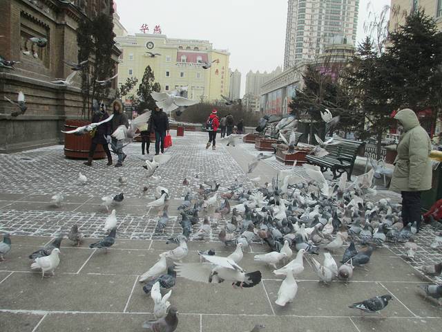 周围有好多鸽子~好担心它们会冷……