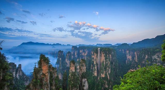 这里是张家界,天空增加了蓝色剂,没有一丝污浊