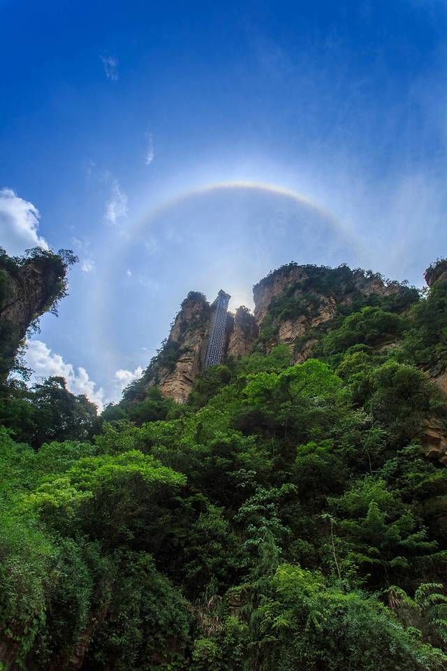 百龙天梯:百龙天梯引位于世界自然遗产张家界武陵源风景名胜区,1999年9月动工,2002年4月投入营运,主要设备由德国生产,耗资人民币1.8亿元,被誉为“世界上最高、运行速度最快、载重量最大的电梯”载入吉尼斯世界纪录。