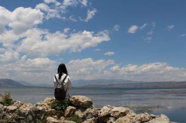 前两天是阴天很适合出行,所以就选择了租车出行。朝蓝夕月客栈的旁边就有租电动车的地方,老板跟他们是熟人了,所以价格很优惠哦。电动车租一天的话就是50-60左右,要记得晚上归还哦,以免影响他们第二天的出租。而且电力要计算好,能够提供你跑完你想去的地方。我大概计算了一下,从客栈骑到喜洲,再去海舌公园,再回来去古城旁边的三塔,再去古城转悠,最后回客栈,一天下来估计就是60-70公里的样子。租电动车是很明智的选择,因为坐车的话你还要走路去景点,沿途有想驻足的地方也没办法下车。所以自行租车很自由。