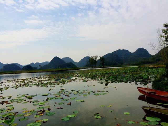 (我只想吐槽一下租给我自行车的老板,你那座太硬了,阁着我屁股疼了3天。还有就是普者黑是彝族聚集地,但是村庄里汉人也是占了大多数,普者黑在彝语里是“鱼虾都很多”的意思,所以无论哪家小餐馆,他们的河鲜都很新鲜!途中还碰到了2个自驾去西藏的广东蜀黍,他们说要带我去拉萨、、、我很不爽的说,大叔我已经被我妈叫做是猪了,要是去西藏晒成了狗,难不成你想让我变的猪狗不如吗?)