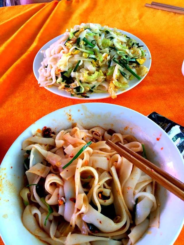 中午大叔就辣么随手一指说,这里都是当地的特色,你们爱吃什么就吃什么~~我和曹姐姐就点了当地特色的卷粉儿,有点类似我们宜昌的米粉,不过他们的卷粉儿的大米味道更浓,我还像猪一样吃了荷叶粑粑,紫色炸洋芋、洋芋丝饼(他们真的好喜欢吃炸土豆啊)