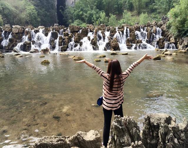 一路上由于司机大哥知道我是湖北人,就开始说天上九头鸟,地下湖北佬。说我这是表扬你们湖北人呀~~你们聪明呀!!好吧!!谢谢夸奖。由于是淡季,不需要门票。(八宝镇的景点,政府都没有开发好,所以真的有待提高,如果环境改善一下,还是很值得推荐的,毕竟能够带动经济的发展,由于靠近边境线,基本没有任何资源利用,我来的一路上看见的都是国家扶贫村)5月份并不是雨季,所以看瀑布难免会不辣么壮观,我一个人就这么浩浩悠悠进去了~~基本都是在山林里面~我边走边看,不知不觉还是翻了两座山。我有点恐高,所以碰到吊桥什么的就特别怕,偏偏我就碰见了吊桥~~然后就把我吓哭了,而且当时我一个人在山林中特别害怕,所以还和猪老二开着视频,就辣么哭了~~~把猪老二那个吓的呀。在三腊瀑布遇见最坑爹的是我迷路了·~~走到了一条死路,最后凭着记忆力又脱险了~有可能很多人觉得景区不可能迷路,你们要是自己去一趟就知道了,没有任何路线提醒,没有人,只有梯田,没有管理者。什么都没有。当时的我很着急。但是经过这个后姐姐我的心里又强大了,没办法,谁让我是女汉子了。