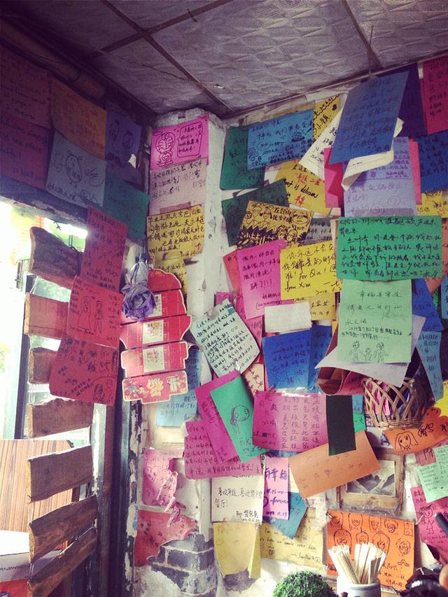十点了,雨还在下,不甘心就这样浪费一个游人较少的好时机,简单收拾就去前台借伞然后愉快的溜达了。第一次走出来搞不清楚路,完全随心所欲的瞎走,人少车少,唯一不美的就是照相不方便,不过最开心的是遇到了美食啊美食嘿嘿~这家离城墙很近的叫背包客的小馆子太不起眼,低矮的小房子,但是墙上桌子垫布下那一张张写满回忆的东西吸引了我,叫上两个特色吃食,味道棒棒哒,强烈推荐噢!!