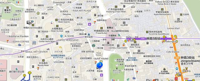地铁线路:安国站=Line3=>钟路三街站C=Line1=>钟路五街站