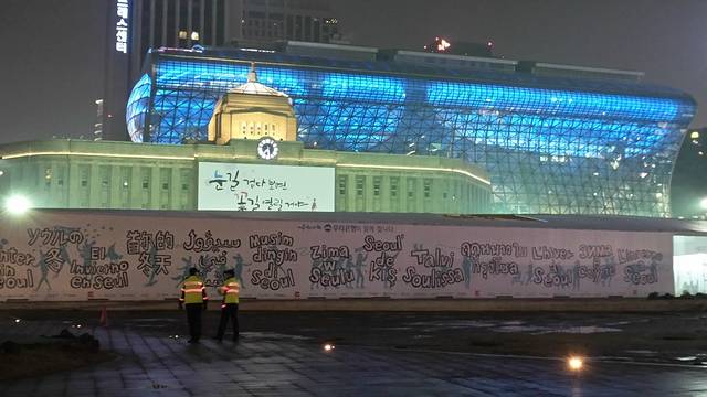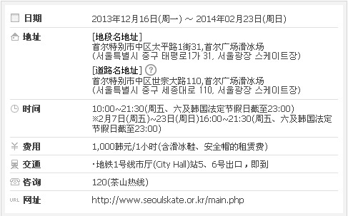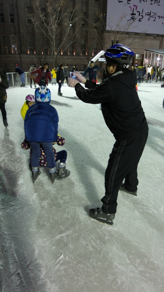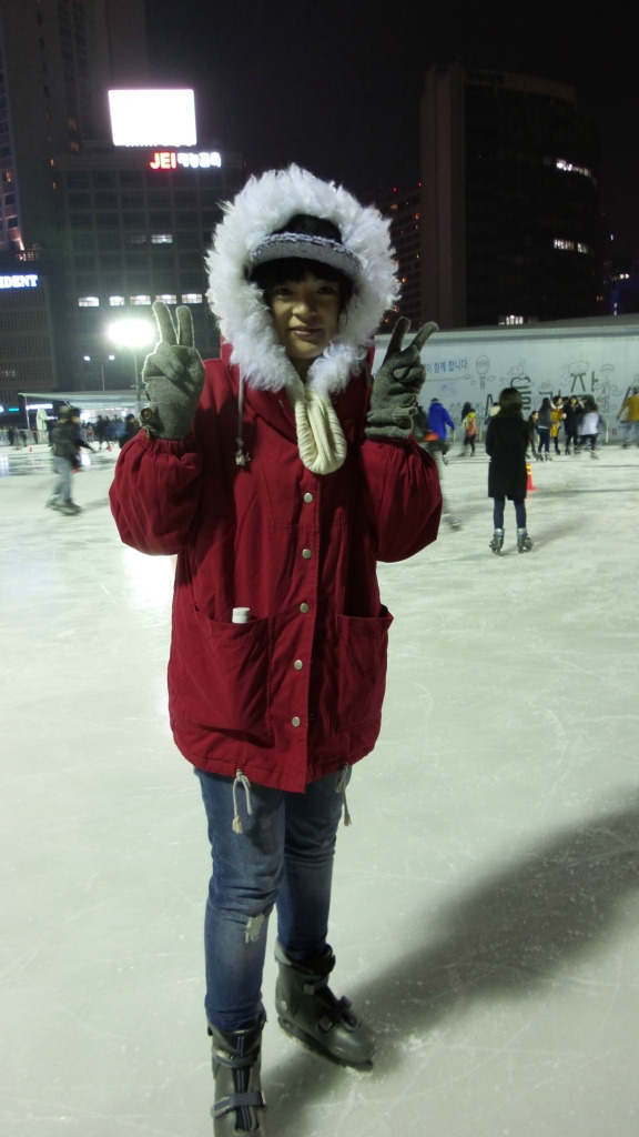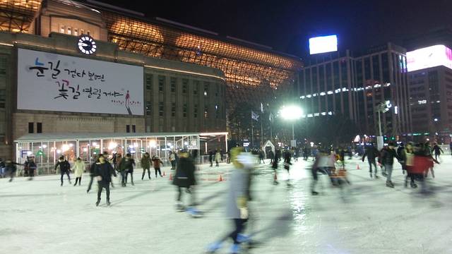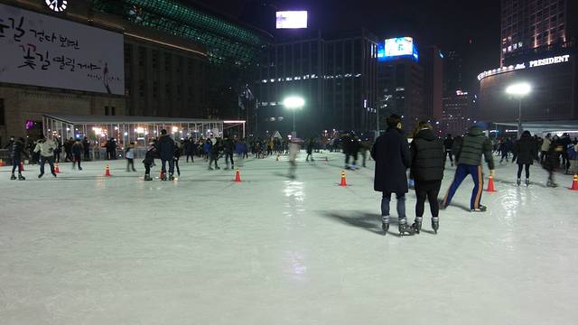 啰嗦话:每年冬季都会有的一个活动,在首尔广场搭建的临时露天溜冰场,冬天去的小伙伴可以关注下韩巢网上首尔的最新活动。这个肯定是比乐天世界里的溜冰划算,露天的虽然冷一些,但是氛围非常热闹,现场还在放着《星你》的主题曲,很多人一起参与的活动,小屁孩的溜冰技能都很高,还有爸爸哥哥带着小弟来学溜冰的,也有很多小情侣和外国人。