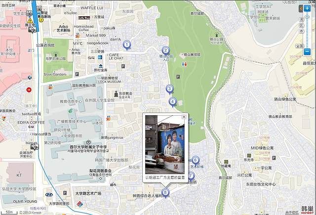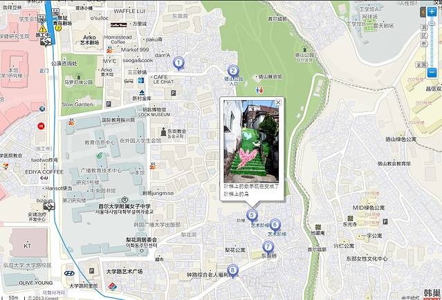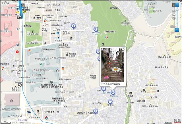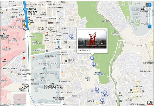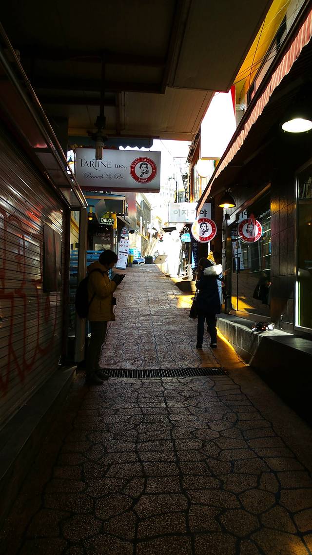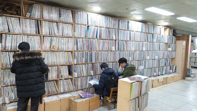 返回时意外走错走到了会贤地下广场,有一块卖胶片唱片的地方,看样子都是老板自己收集起来的,按元音排列着,一整墙看着也挺不明觉厉的。具体的走法是在之前提到的绿色路线中,友利银行的斜对面,一个像地铁入口的地方,那个其实不是地铁入口,地铁还需要往前走一点。