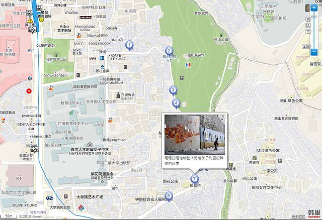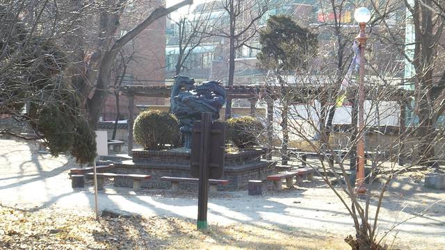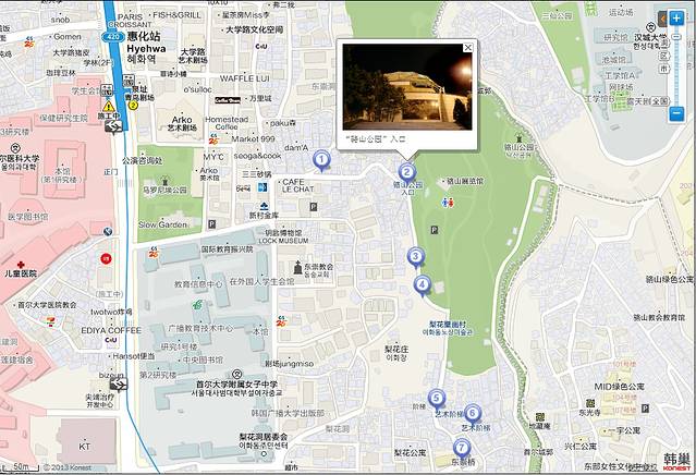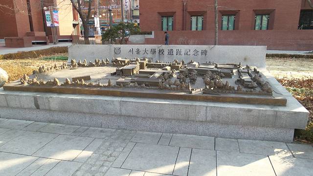 2号口出来往前走一点就是一片广场,这里有首尔大学遗址的纪念碑,纪念碑左边的这条路就是线路地图的入口