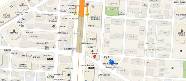 地址:首尔市江南区新沙洞 602 CGV影院狎鸥亭新馆1楼