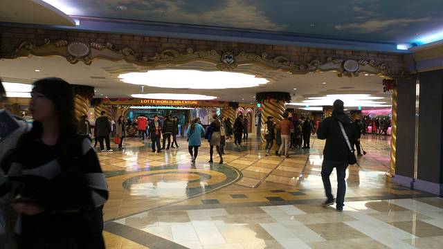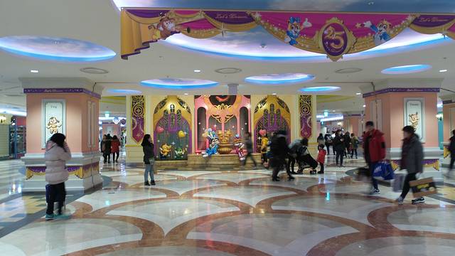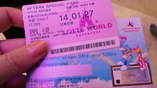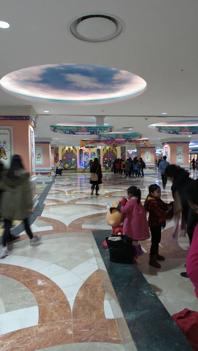 啰嗦话:因为本来已经很累,外加乐天世界里几乎每个项目都得等上半小时才能玩到,真是累上加累,玩的心情有点小崩坏。玩之前先找本地图,但是要看清楚标的颜色,层数和数字仔细找位置。我们先是玩了个咖啡转盘,因为力量不够根本没有转很快,晕倒是晕了。然后小伙伴要去室外玩,到了那里选择了飞椅,于是俺就默默在旁边等她,排队一直排到快天黑终于玩到了,然后超级崩溃得受不了超级冷得又躲回了室内。接着去玩了碰碰车,孩子们不要去玩,真没意思,还要等很久。然后意外玩到了之前看到的一个阿拉丁船,这个倒是没有排很久,然后还蛮好玩的。小伙伴想坐天花板上的气球,于是就转战到最高层,以为人多的地方就是气球的队伍,结果拍了三刻钟(期间楼下的游行表演开始了)排到了才发现不是气球是冒险车,和阿拉丁差不多,更刺激一点,玩好之后跑到气球那里,人家说因为待会有激光秀所以气球关闭了。回到一楼后,我想玩的激流勇进终于人少了点(但也差不多排了三刻钟),于是漫长的等待之后,坐到了感觉还不错的激流勇进,觉得是今天玩得当中最好玩的了。本来还想玩过山车的。临走前正好激光秀开始,超级有feel,坐下来看一会,玩的当中的疲劳都慢慢忘记了。