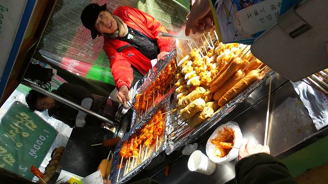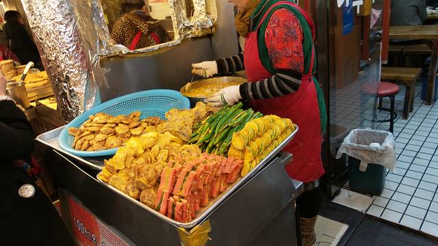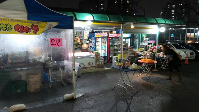 那家杂货店,锅里煮的是蝉蛹,看到一家人买了一小碗吃,韩国人把这当零食吃的,高蛋白质,小伙伴觉得太恶心了,感觉嚼的时候就和碾死蟑螂的声音是一样的吧(邪恶笑)