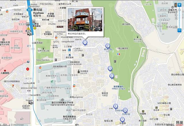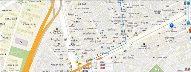 啰嗦话:韩国妹子推荐的好吃的部队锅店,人气的确很足的样子,墙上也有很多明星签名便签,但是由于很伤心所以食不知味,不过依旧很吃货得消灭了一锅。因为时间来不及就没有去逛林荫道,看资讯是说那里也算是一条购物街。