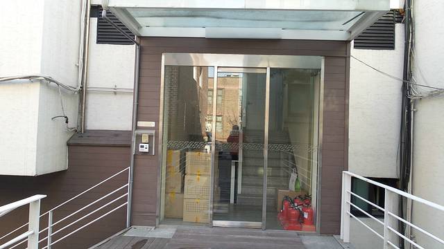 然后看到这家店就到了,照片的左边就是入口,一进去可以看见一个保安亭,里面坐着一位没有表情的保安大爷,然后左手边就是电梯,只有左边的第一部电梯可以到达sauna,在4F。