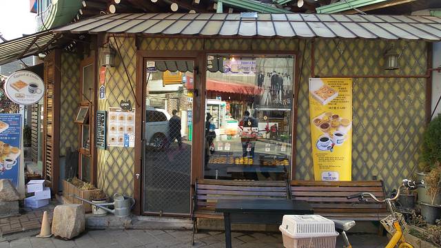 啰嗦话:这里其实是一家蛋挞店,禁止拍摄,只准买蛋挞,一个小捕梦网20,000韩元,不知淘宝怎么个行情。附近就是北村一带。