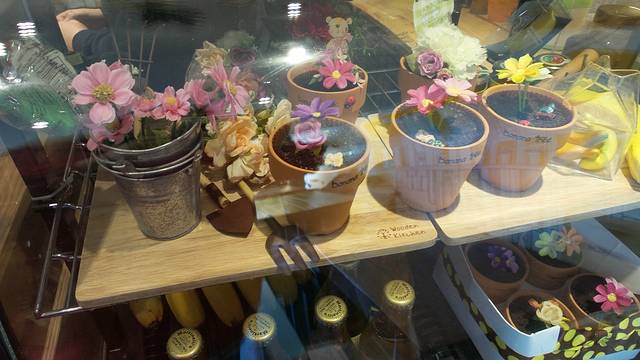 推荐:草莓味花盆蛋糕(红色小花)和星星拿铁(是香蕉的)