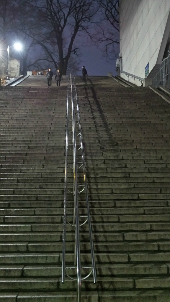 这个是问了缆车工作人员才大致清楚的方向,具体就是南山缆车返回之后,出了缆车站楼,直走一点到马路上往右边走可以看到一家杂货铺,继续往前走啊走走啊走,看到状似图书馆建筑的时候就到了,走到一半因为迷茫想放弃时,一位热情的正锻炼身体的大爷搭话问去哪儿,然后就给大叔看了图片,大爷就明白了是三顺阶梯,然后说跟他走就是了,我们一路小跑得跟着大爷到达了(其实我们走的方向是对的),过马路的时候大爷还教了我们按信号灯下的按钮,至于有什么用不太明确,到达和大爷道谢后,大爷就麻溜得往上爬。