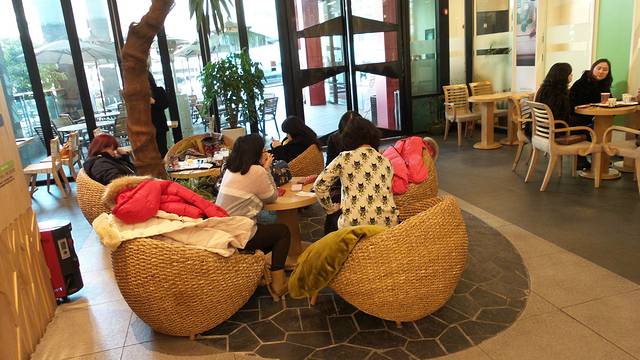 回来后换好鞋子在休息室里呆一会,里面还有热腾腾的小吃卖哟。