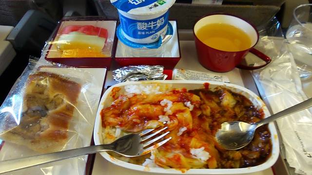 丰盛的飞机早餐,面包卖相太差,但据说很好吃一个,小伙伴说饭里有瑶柱,不明觉厉,辣酱很好吃。