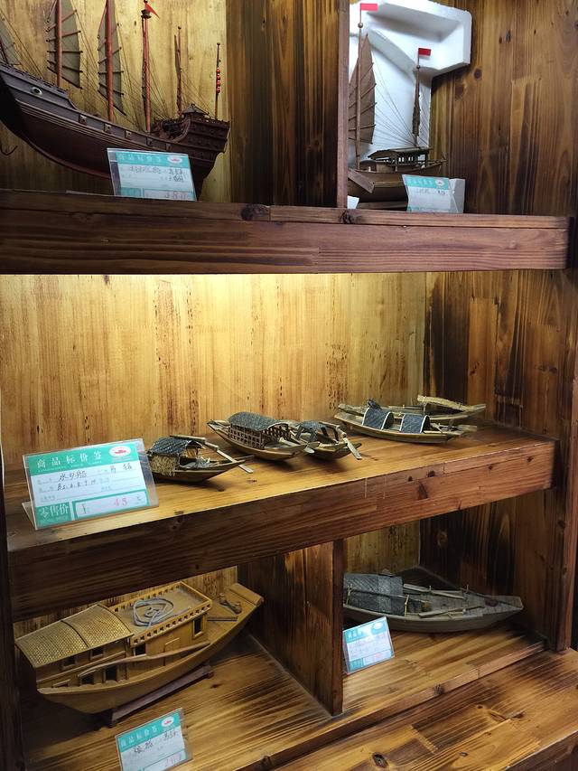 买手工艺品的店铺~很多手工乌篷船