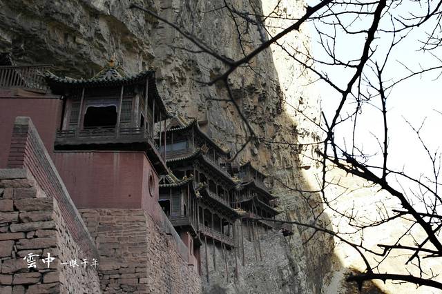 到大同后的第一站是悬空寺。悬空寺就在恒山壁上,是北岳景观之一。原本想登恒山,也体会下元好问的气魄,“谁能借我两黄鹄,长袖一拂元都门”。可惜装备不够,还没上山就被寒风吹透了,只逛了悬空寺就下来了。