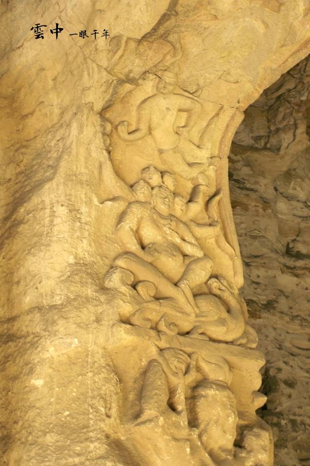 礼佛大道,传说是受到希腊文化的影响。不过看大象底座的雕刻风格,还有下面那个小像夸张的肢体动作,似乎也很有印度教的意思。这应该是重修时按照《水经注》的描述建起来的。