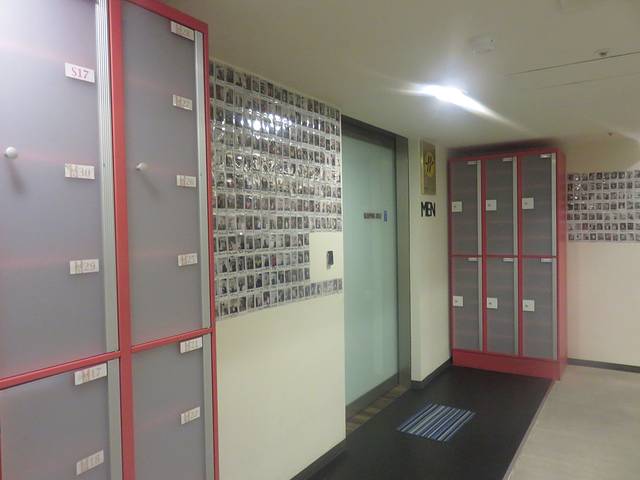 免费的寄物柜,需要一枚NT10的硬币当锁用。柜子数量不多,十点多就存满了,后来的人只好存在服务台。