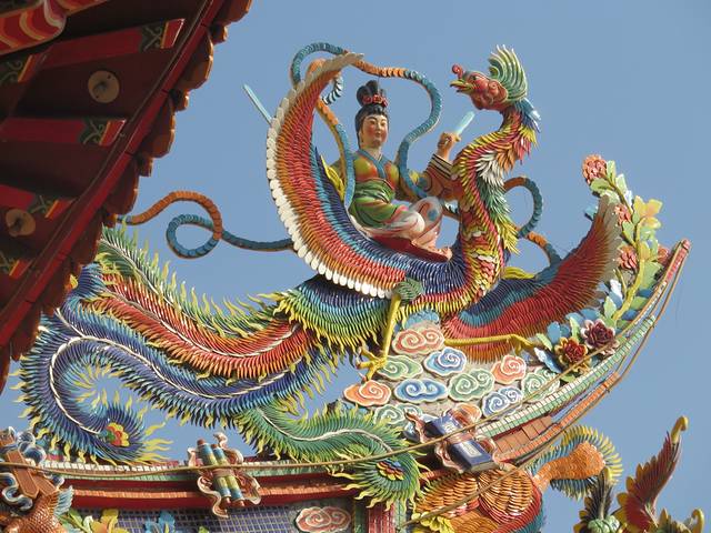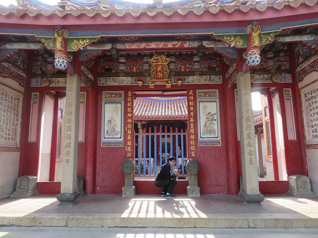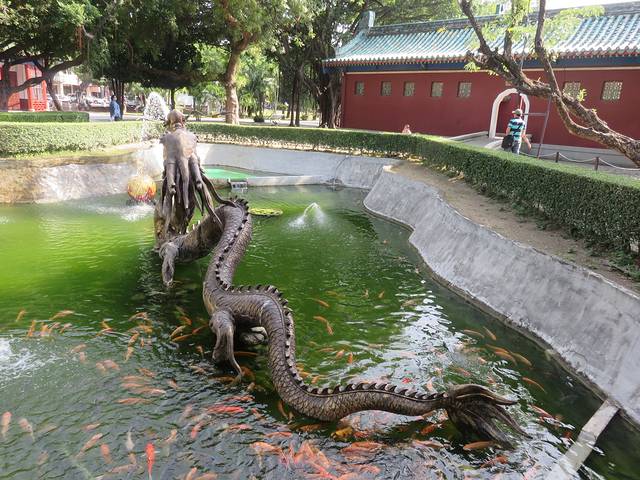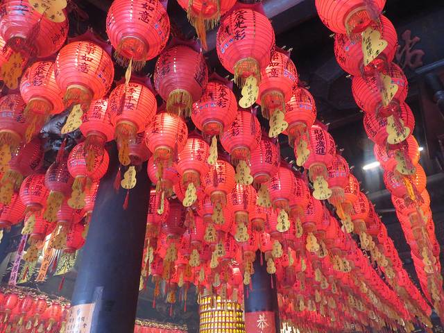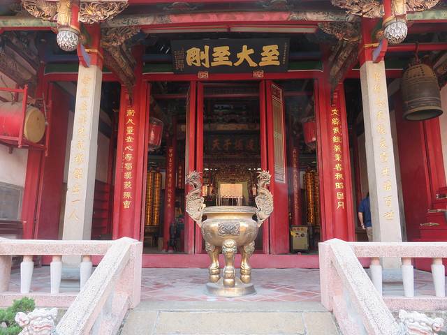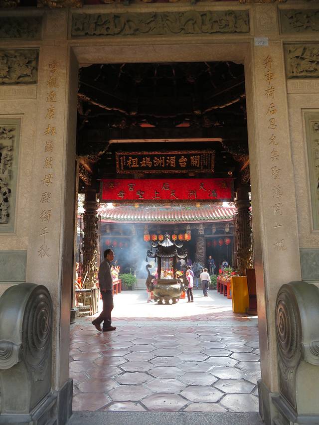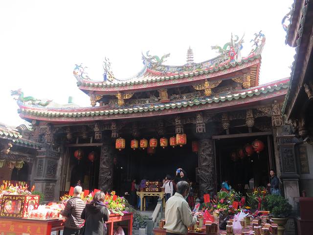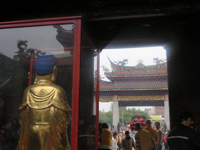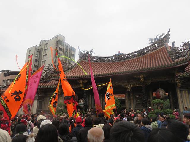 到了龙山寺才发现,刚才队伍绕了那么一大圈,原来和我一样是要去龙山寺。队伍要在龙山寺的殿前做一番表演,外面的人早已围了个水泄不通。我很幸运是在剥皮寮遇见了绕境队伍,得以一观活动的全貌,若在这里就只能看别人的后脑勺啦!