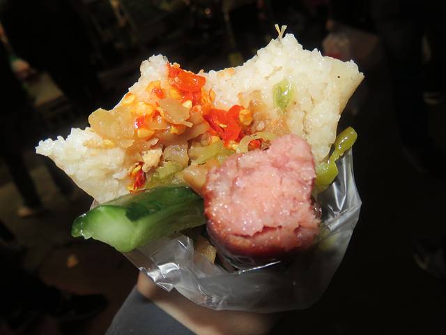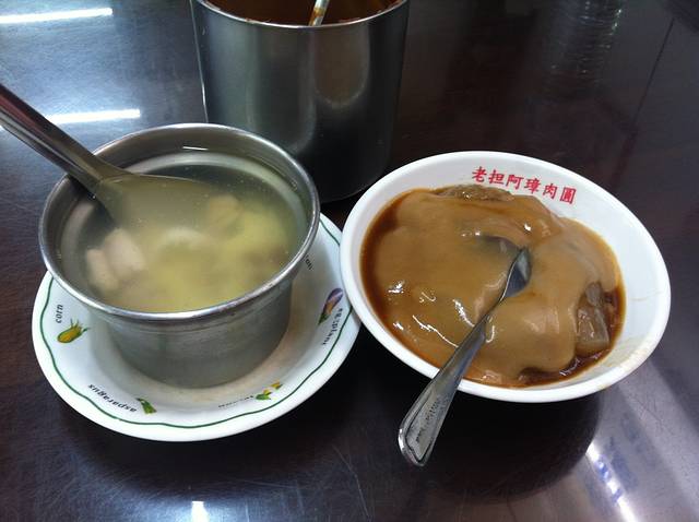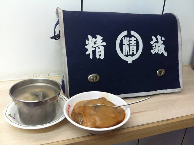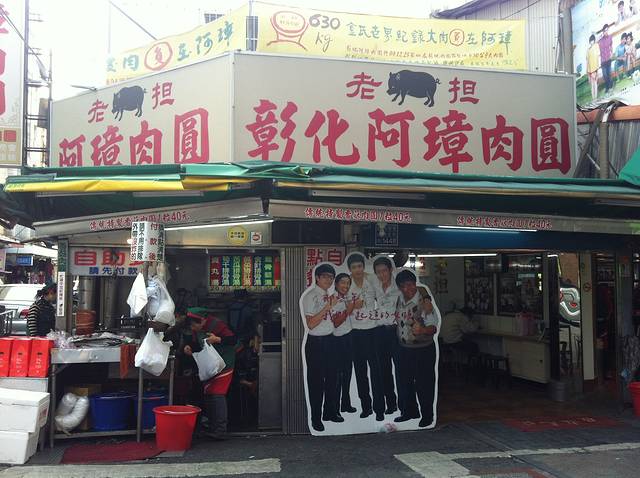 @彰化,老担阿璋肉圆,《那些年我们一起追的女孩》片头男主和他的小伙伴们吃早餐的肉圆老店。点了份《那些年》套餐,和店里的精诚中学书包摆在一起