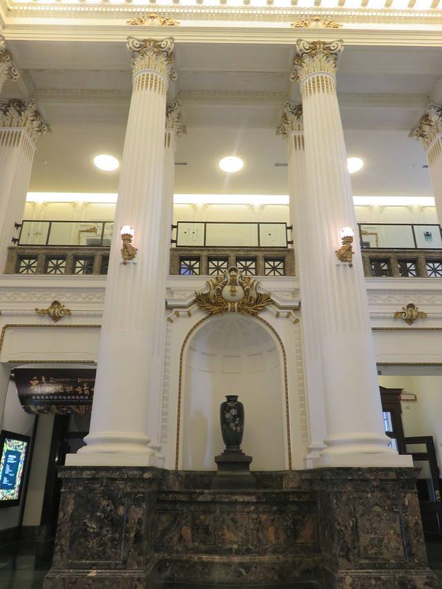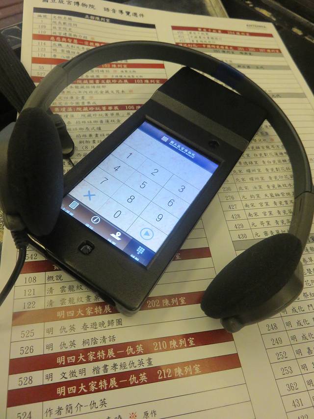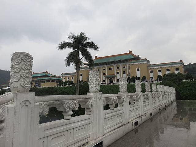 和检票口的人说了半天,终于被同意等会儿随导览团进馆。在服务台报到、领取导览专用的耳麦之后,我们一行15人随着一个一看就知道是做了几十年研究、书卷气极浓的老奶奶进入了展馆。老奶奶说话声音很小,但不管我们离她多远,耳麦都能像听电话一样收听到她的声音,这点倒是很方便,因为九点半之后,大批的旅行团来了,展厅里很快人山人海,我们经常会被别的队伍冲散。老太太很专业,对各种展品的年代、所代表的制作工艺、它们背后的故事和文物历史背景都如数家珍,本来导览只有一个小时,但她似乎不把博物院的精华全部向我们展示一遍就很不满意,硬是讲了两个多小时。大家都听得很过瘾,受益良多,只是我本来状态就不很好,又这样在人潮中挤了两个多小时,导览结束的时候感觉都快虚脱了。硬撑着在几个最感兴趣的馆又转了一个小时,就实在受不了出来了。坐在大厅的椅子上休息了好半天,吃掉了之前在7-11买来当干粮的海鲜双手卷,才感觉好了一点。在礼品部给喜欢看清穿剧的朋友买了雍正御笔的“朕知道了”字样的胶带,又买了好些明信片和几本书,便回旅舍。在博物院正门口乘坐棕20路公交车到剑南路站,转乘捷运回旅馆。