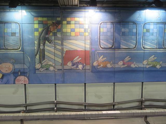 【台北松山机场】:出机场坐电梯下到地下三层就是捷运文湖线的【松山机场站】