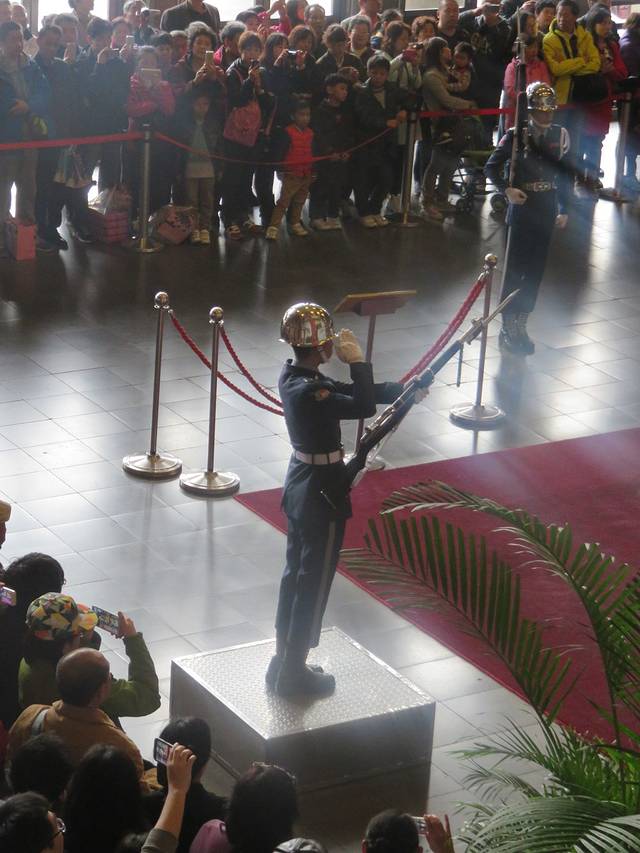 刚好遇上整点的换岗仪式,不过在中正纪念堂已经看过一次了,所以我也不着急往人群中挤,很悠哉地到处溜达。