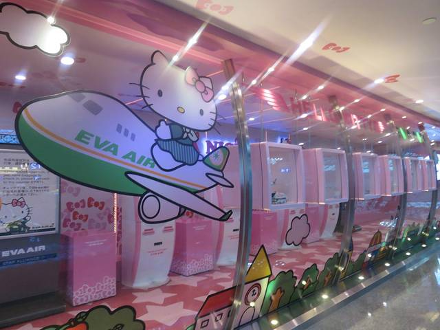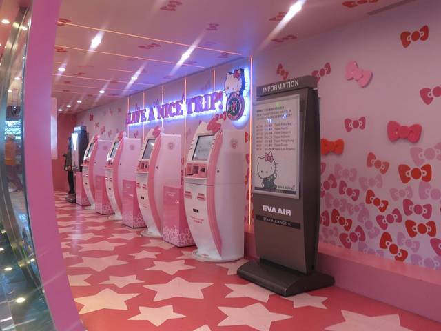 桃园机场的另一大特色是有很多和kitty猫相关的东西,譬如说这个自助值机室: