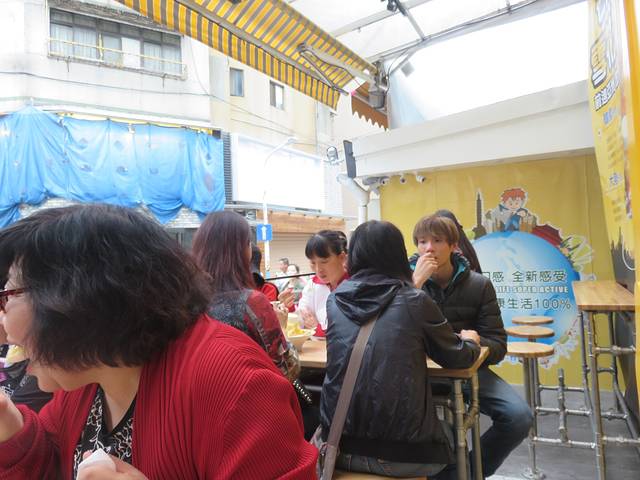 开谷歌导航找到了隐藏在商业街里的阿宗面线。这是西门町的招牌小吃,店家摆出了不少塑料凳,男女老少都坐在店前吃得咂咂有声。我被那个颜色黄黄的辣椒酱欺骗了,本以为它不辣才加那么多的,结果。。。辣得太劲爆了吧!!根本不像是爱吃甜食的台湾人做出来的辣酱嗷!(顺带一提,台湾大部分的辣酱都是带甜味的。)