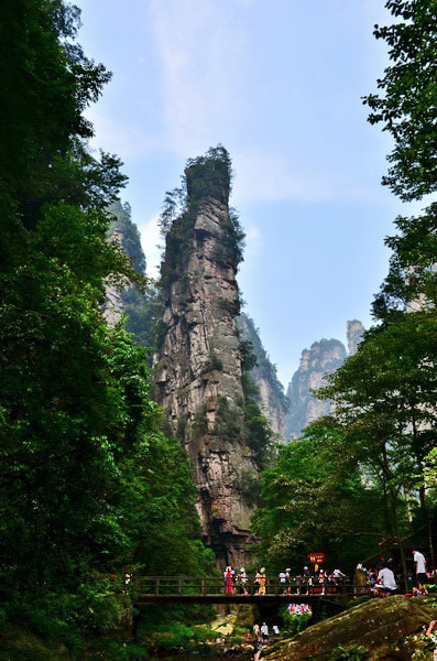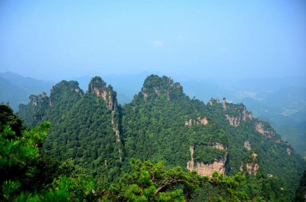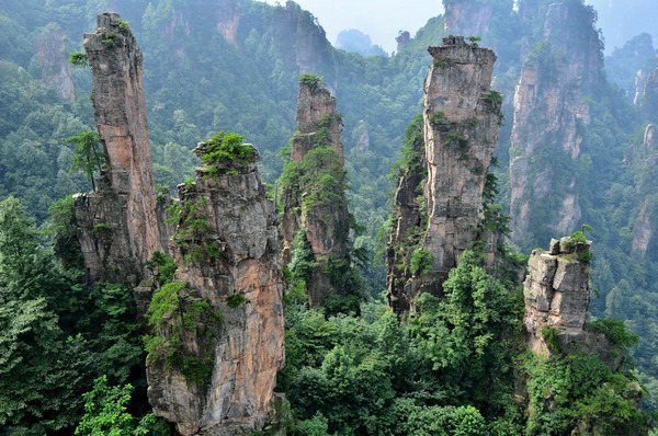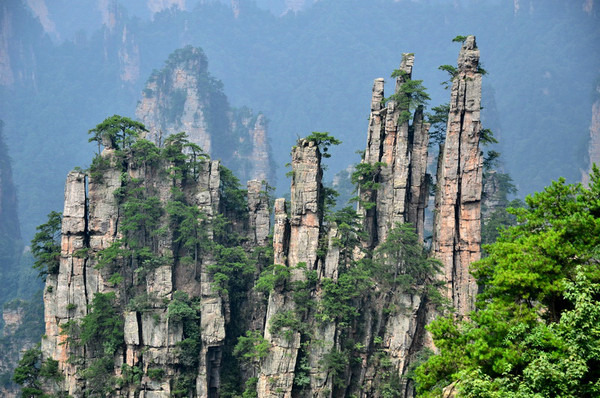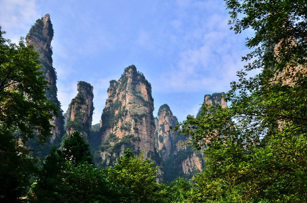 第三天天子山不但险绝,且给人神秘幽静之感,尤以石林奇观闻名遐迩。无数石峰如剑如戟,森然列于其间,更似千军簇拥,气势雄浑无媲。览胜之间,令人遐思无限,不得不惊叹造物者的鬼斧神工。