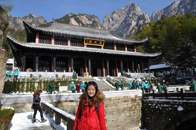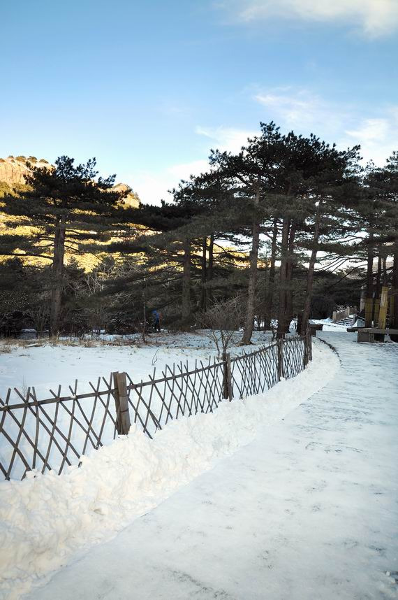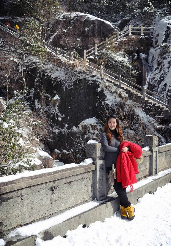 下山轻松多了,我一直在庆幸我这个没爬过大山的孩纸居然第二天一点肌肉反应都没有,要知道昨天可是爬了10多公里山路的啊!!一路小心翼翼的,深怕在这冻着的台阶上滑到~~所谓小心驶得万年船啊,哈哈!一路有说有笑,下山的时间过的很快!看到了狮林大酒店~~