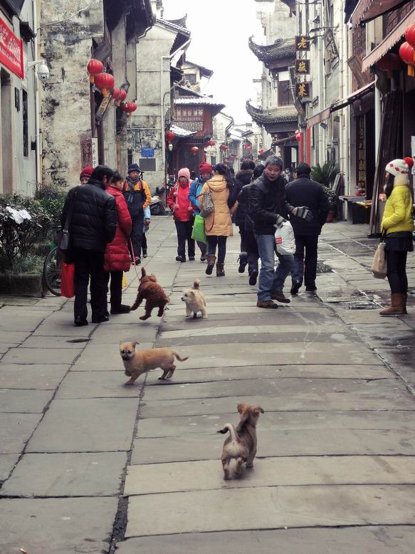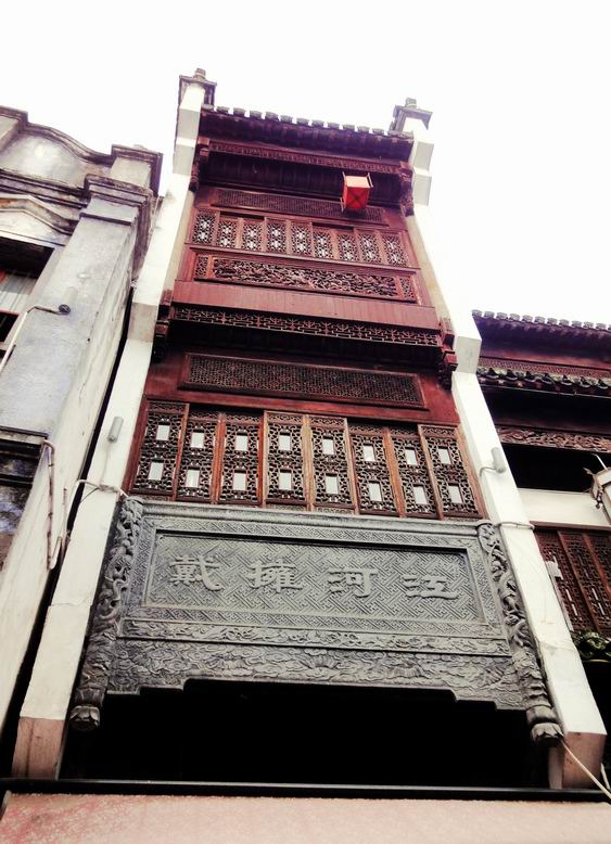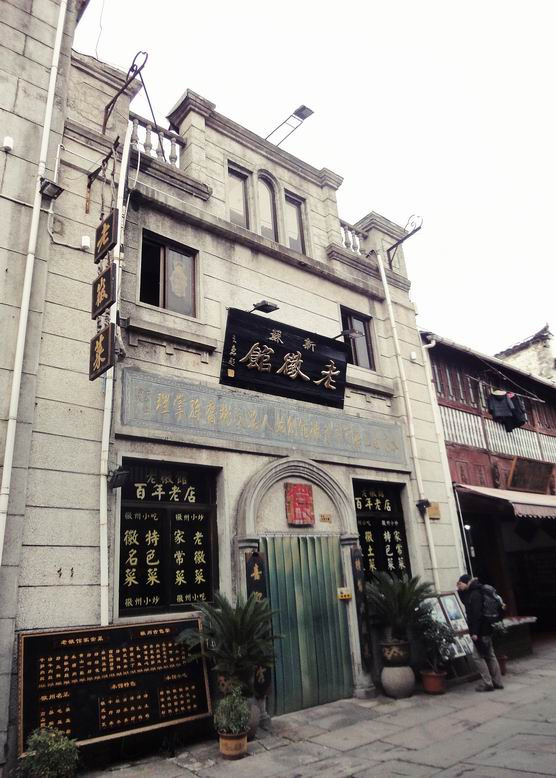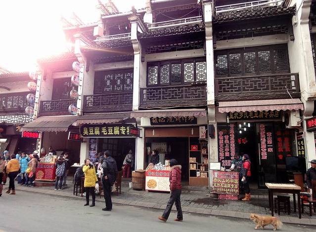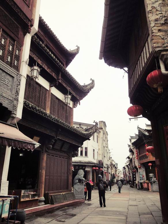5个小时在我不间断的吃东西中度过了,手机下了电影也一点没看,大概下午2点半不到我们到了黄山市区,因为行程比较激动,我们决定先逛下市区的屯溪老街,因为天也有点阴霾,那么早去黄山泡温泉也没劲,于是乎老街走起