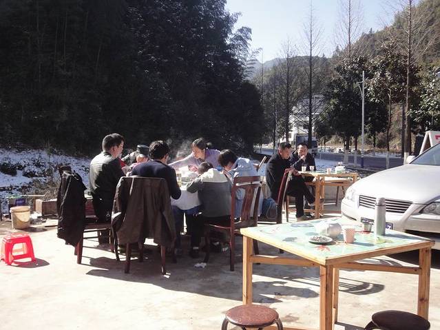 黄山脚下的吃饭就是宰人,又贵又难吃,所以我们决定先出发,路上吃农家!!果然没过多久路边就有农家小吃了,立马找了个人气好的停了下来!!中国人都喜欢凑热闹,我们吃的那家还有两桌在吃,可对面一家一个人都米有!哈哈