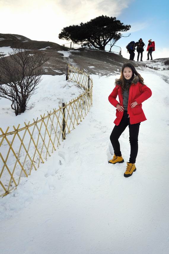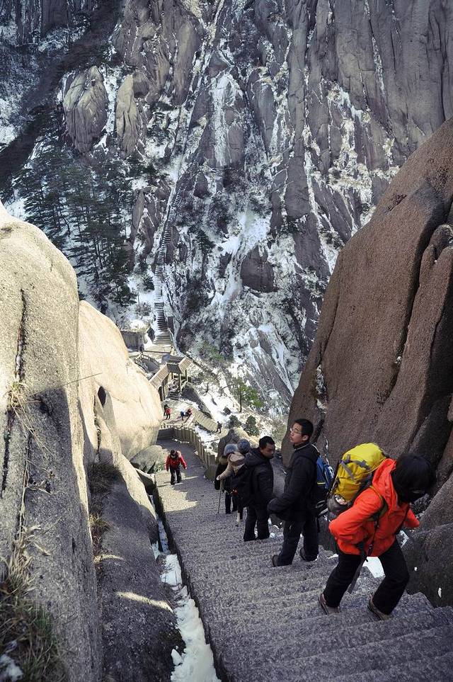 路上很多人脚上都套着防滑的钉鞋,我不要戴那个东西,试了下觉得难受就没买,所以一路爬的小心翼翼,路上的确有点滑~~~