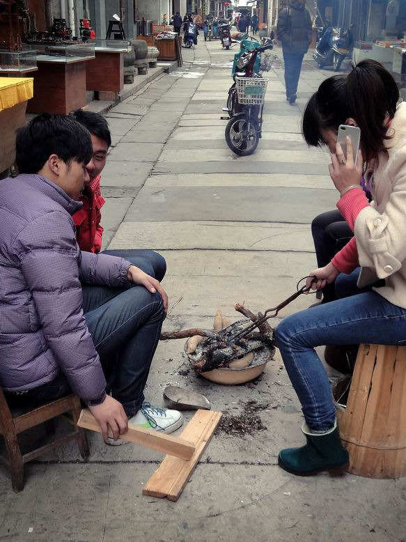 老街路中间居然还有人在烤红薯,我表示很好奇,是游客吗?怎么在路中间这么坐着烤呢??
